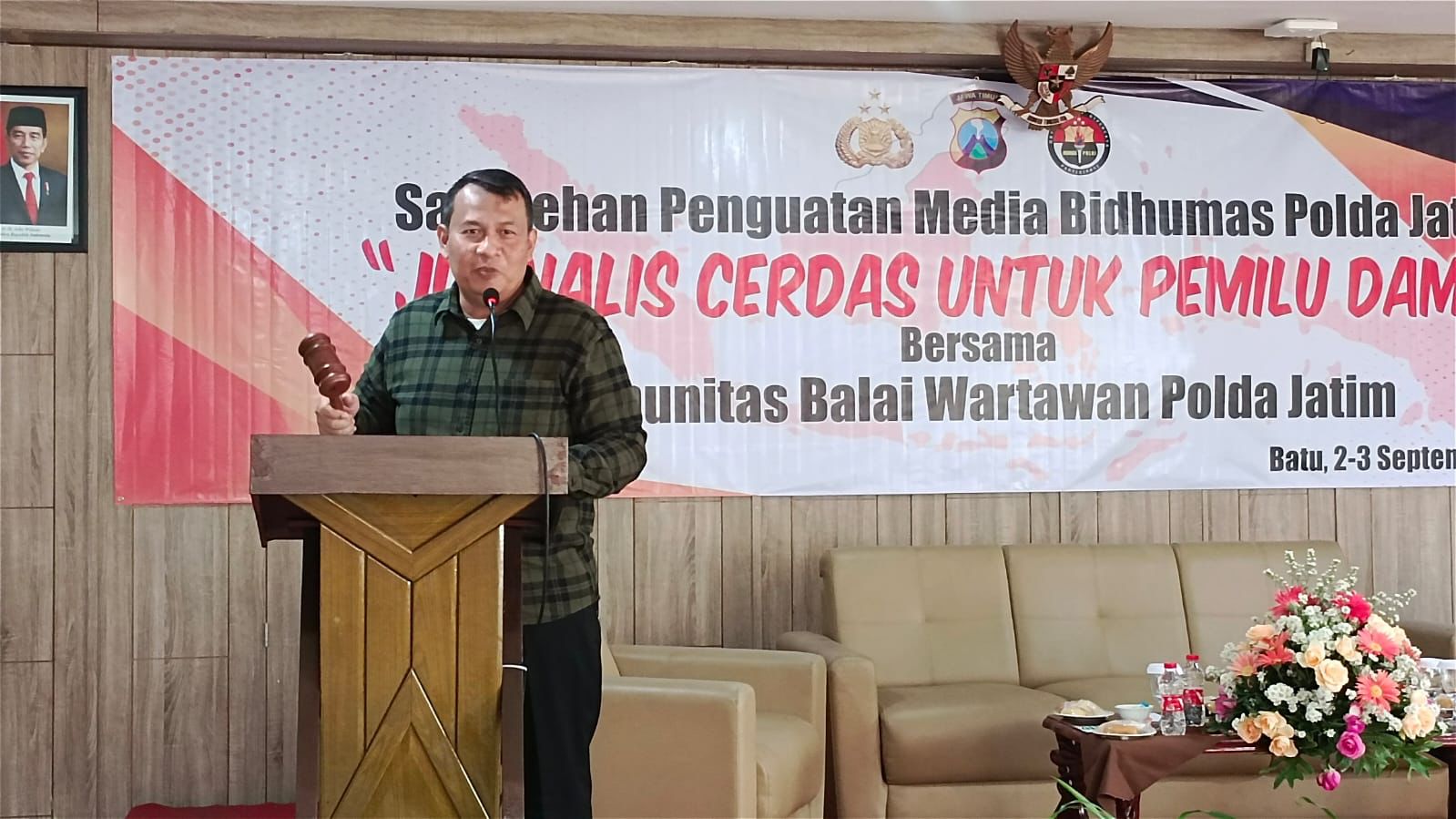 Hal itu seperti disampaikan oleh Kepala Bidang Hubungan Masyarakat ( Kabidhumas) Polda Jatim, Kombes Pol Dirmanto saat menggelar Sarasehan Penguatan Media Bidhumas Polda Jatim, yang mengambil tema "Jurnalis Cerdas Untuk Pemilu Damai" di Kota Batu, Malang Jawa Timur, Minggu (3/9).