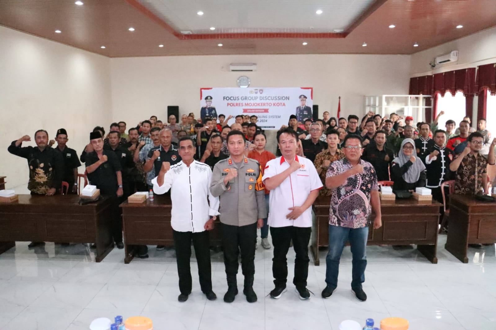 KOTA MOJOKERTO - Sebanyak 9 Perguruan Silat se-Kota Mojokerto mengikuti kegiatan Focus Group Discussion (FGD) dalam rangka Nusantara Cooling System menyambut Pilkada Tahun 2024 yang digelar oleh Satbinmas Polres Mojokerto di Aula Hayam Wuruk, Jum'at (02/08/24) pekan lalu.